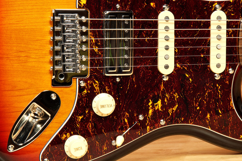 This is not a cheap Squier short scale. This is basically like someone took your Fender Stratocaster and shrunk it down about 10 percent. It's got a nice sounding Guild humbucking pickup in the bridge. The neck plays amazing. Fender didn't skimp on quality with this axe. Body contour on back. Synchronized tremolo. Fender engraved neck plate. Five-position switch, with Volume and Tone. It's in excellent condition, only imperfections are some guard scuffs and few tiny marks. Frets are good with some very mild flattening. Weight is 6 pounds, 9 ounces! Grab it before it's gone. I do a full cleaning and setup on all guitars. (Details on my setups and packing at bottom of listing.) Thanks for looking!